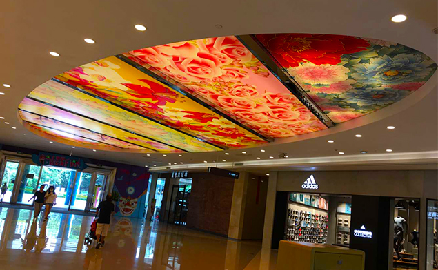卡布軟膜燈箱不僅限于室內(nèi)壁掛式或是立式的廣告,也不限于正正規(guī)規(guī)的長方形或正方形,像這種商業(yè)類的天花軟膜燈箱現(xiàn)在也是裝飾裝潢的新形勢(shì),特別創(chuàng)意的廣告可以快速吸引消費(fèi)者眼球.